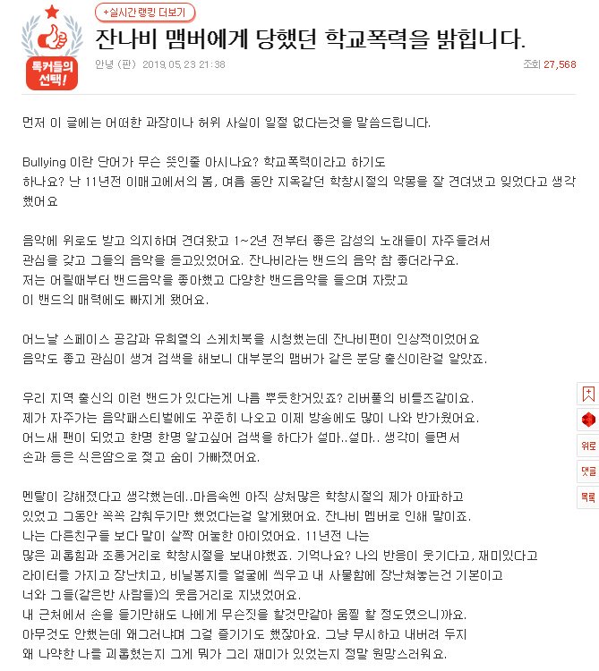 잔나비에 학교폭력 당했다는 글 전문잔나비에 학교폭력 당했다는 글 전문