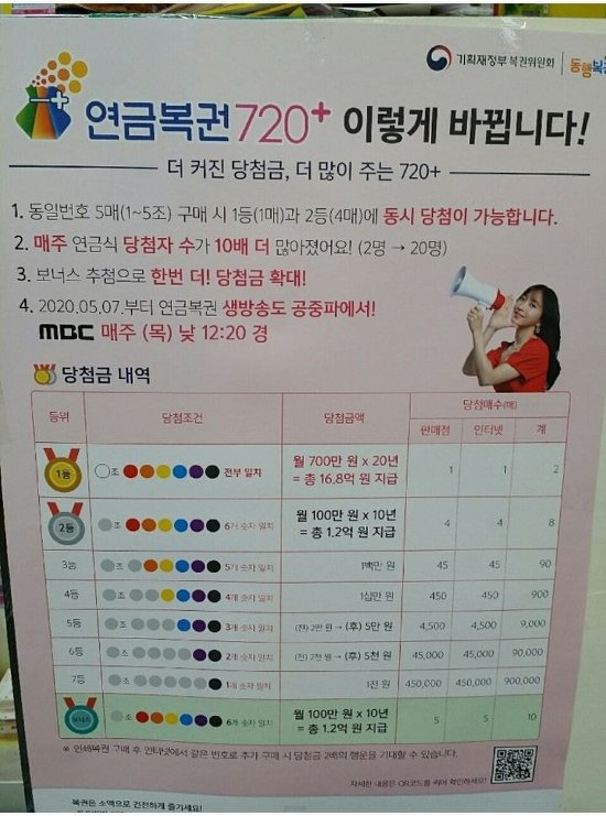 현재 연금복권은 500만원을 20년간 지급하는 연금복권 520이었는데 700만원을 20년간 지급하는 연금복권 720으로 업그레이드 된다는 소식입니다.